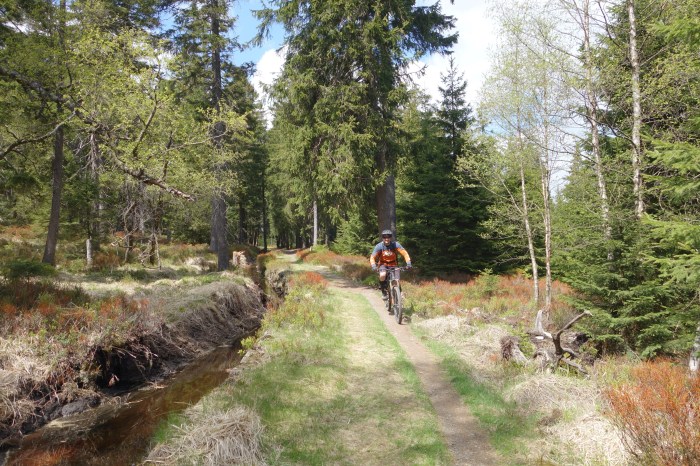 Glücklicherweise ist nicht der ganze Harz gleichermaßen stark betroffen. Wir unternehmen schöne Wander- und Mountainbike-Touren, zu großen Teilen entlang des Flusses Bode, der sich durch die Täler und Wälder schlängelt. Auch dort wo große Parkplätze auf üblicherweise viel Tourismus schließen, ist nichts los und wir können die noch frühlingshafte Natur in Ruhe genießen.
