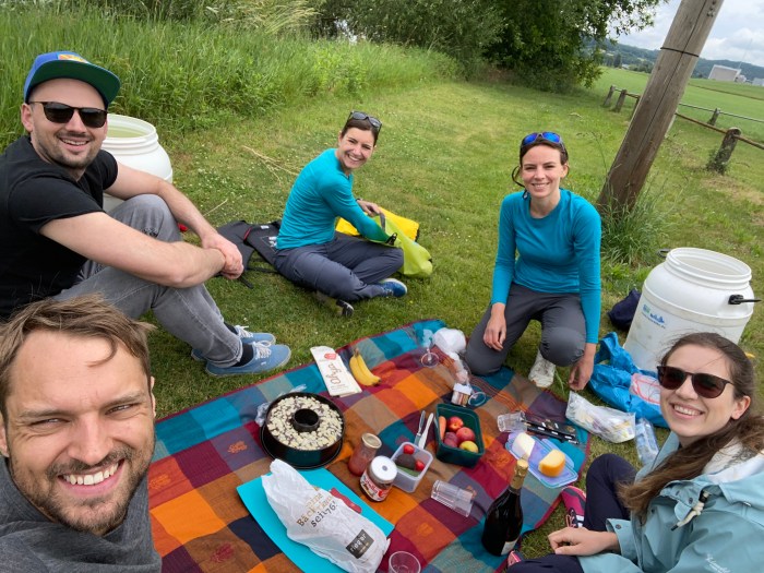 Leider müssen wir unsere Tour am zweiten Nachmittag frühzeitig abbrechen. Ein schweres Unwetter ist angekündigt und geht später auch laut und nass los. Ganz spontan besuchen wir dafür meinen Bruder Peter und seine hochschwangere Freundin Melissa in Frankfurt. Schön, die beiden und den großen Babybauch nochmal zu sehen, bevor ich in den nächsten Wochen auf die Ferne Tante werde. Hier nehmen wir die Annehmlichkeiten eines festen Wohnsitzes in Anspruch und waschen drei Waschmaschinen voll Klamotten.