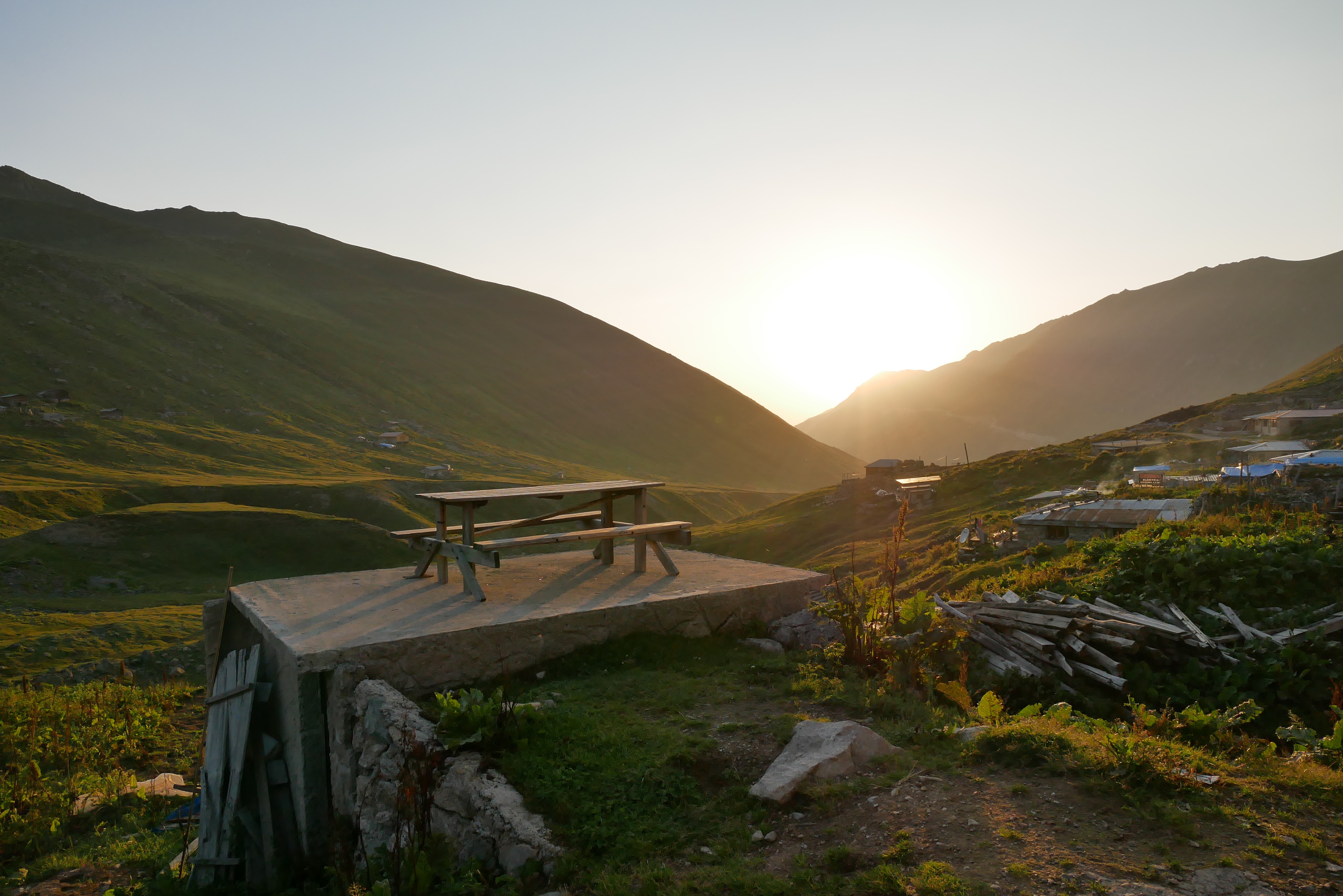 Wir fahren entlang der zugebauten Küstenstraße in Richtung Westen und lassen den kleinen Corona-Faustschlag sacken. Irgendwann fahren wir ab in ein Tal ins Landesinnere und finden bei einem Rafting-Anbieter einen kleinen Campingplatz. Der Besitzer hat Dutzende Medaillen und Urkunden ausgestellt, er war Rafting- und Kajak-National- und Regionalmeister und bei Weltmeisterschaften dabei. Körperbau und Bizepsumfang lassen daran keine Zweifel. Bevor wir am nächsten Morgen aufbrechen kritzelt er uns noch Punkte auf eine Karte und zeigt uns dazu ein paar Fotos: schöne Dörfer und Aussichten im westlichen Kaçkar-Gebirge, in das wir für ein paar Tage eintauchen möchten.