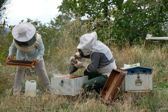 Nach dem Herbst kommt der Sommer. Thessaloniki erwartet uns mit hochsommerlichem Wetter und Urlaubsstimmung. Es ist Samstag und das Großstadteben spielt sich draußen ab, in den vielen Cafés und Tavernen und beim Flanieren an der Uferpromenade. Als wir bei einem nett aussehenden Café halten, werden wir unversehens von einem älteren Mann herbeigewunken. Er kann kein Englisch und ist dazu schwerhörig, aber er versteht es, uns herzlich willkommen zu heißen: Er gibt uns zwei Gläser leckeren griechischen Wein aus, um 13 Uhr mittags. Wir schlendern durch die Stadt, haben keinen Zeitdruck und nicht das Gefühl auf Sightseeingtour zu sein oder gehen zu müssen. Am frühen Abend spazieren wir hoch auf den Hügel hinter der Stadt, sehen die Sonne im Meer versinken und lassen den Tag in einer griechischen Taverne ausklingen. Was geht´s uns gut! Griechisches Lebensgefühl und leckere Meze sind mir nicht fremd. Einer meiner besten Freunde, Alexes, ist Grieche. Mit ihm zusammen war ich schon auf seiner Heimatinsel Ikaria und habe noch mehr Griechenland in Berlin erlebt – bei zahlreichen gemeinsamen Abendessen und griechischen Rembetiko Konzerten. Jetzt freue ich mich auf mehr Griechenland in Griechenland in den nächsten Wochen.